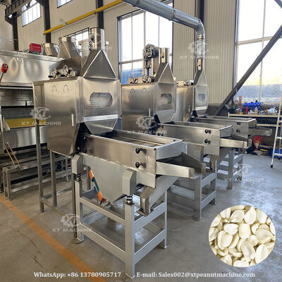 دستگاه پیشرفته برش و بلانچینگ بادام زمینی که برای کاربردهای فرآوری مواد غذایی طراحی شده است، ساخته شده از استیل ضد زنگ 304 با کیفیت بالا برای دوام و بهداشت.