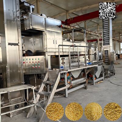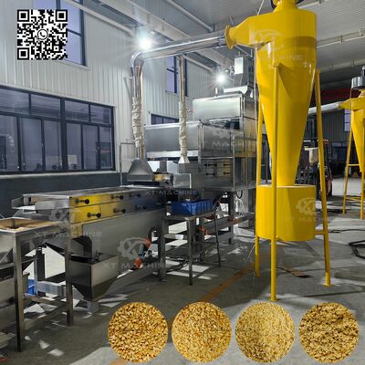 این سیستم خردکن پیشرفته دارای یک فرآیند دو مرحله ای است. هنگامی که بادام زمینی های پوست کنده شده و نصف شده از طریق نوار نقاله عمودی وارد خردکن می شوند، ابتدا توسط دستگاه خردکن اولیه به دانه های درشت خرد می شوند، سپس به خردکن مرحله دوم می روند تا به گرانول های مخلوط تبدیل شوند. با الک لرزشی یکپارچه، مواد خرد شده به 4 مشخصات یکنواخت مرتب می شوند. به طور معمول، اندازه های خرد شده به 5-8 مش، 8-10 مش، 10-12 مش تقسیم می شوند، با مواد زیر 12 مش که بافت پودری را به دست می آورند.